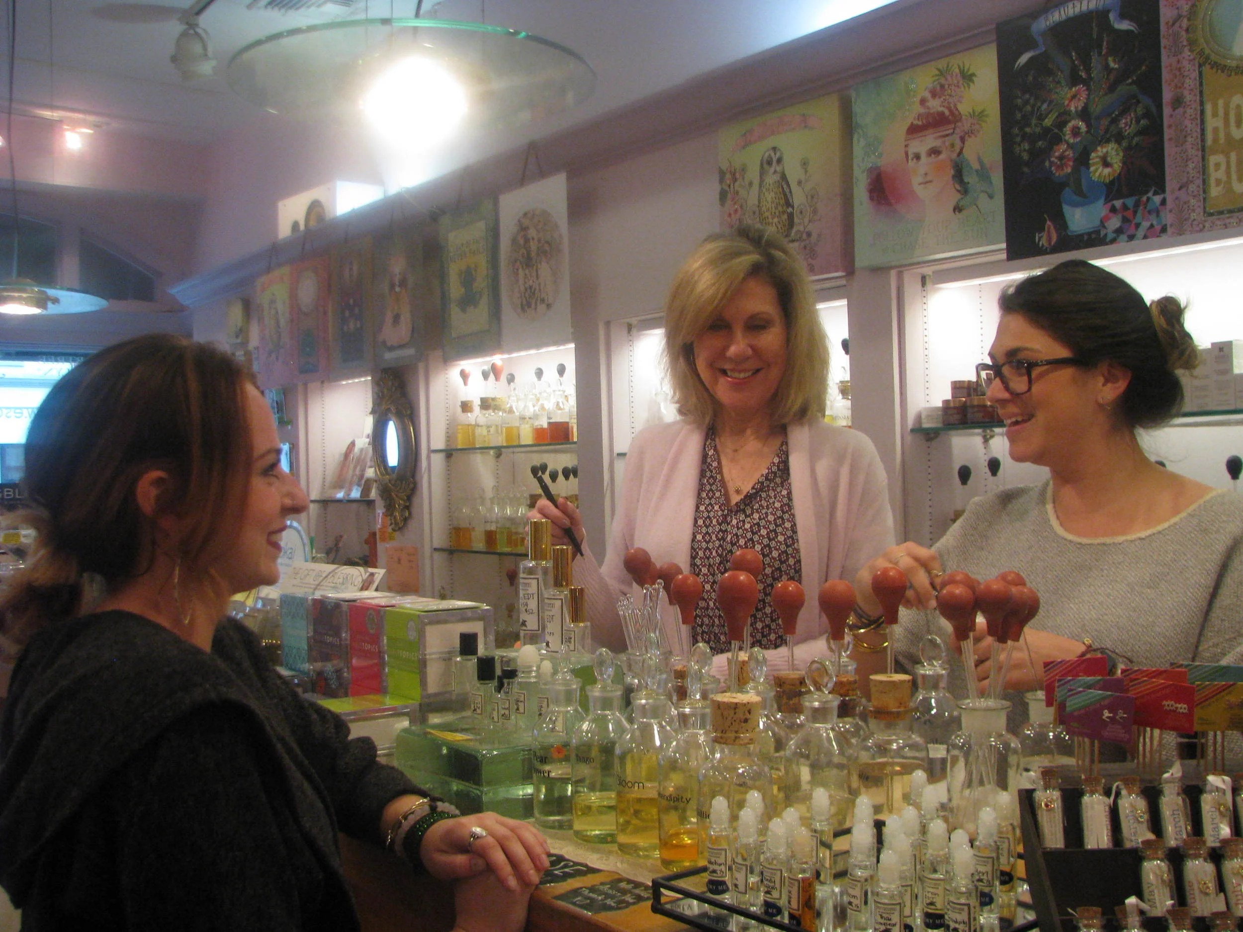 Naming is part of the fun of buying a custom fragrance at Scentsational, where customers can choose from a wide array of fragrances created in the store or create their own, which they then name.