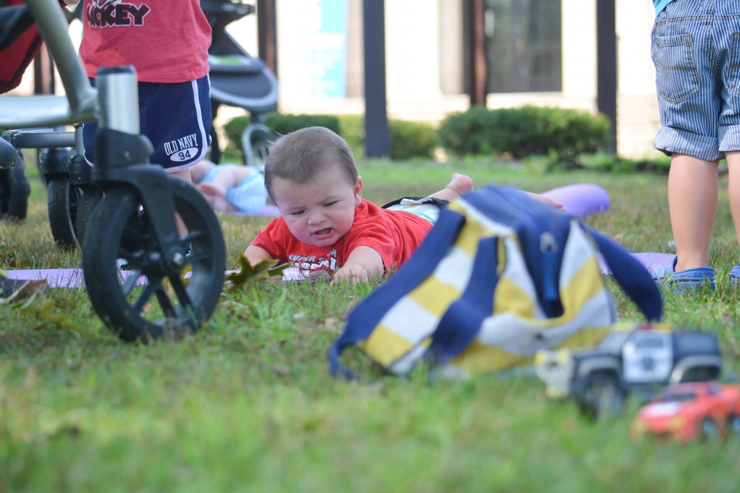 The swarm of strollers marks the group’s spot in the park. The strollers’ corresponding infants are sprawled out on the grass, the toddlers toddling about as their mothers follow them with their eyes.
