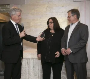 Suffolk Executive Steve Bellone awards the first annual Scott Martella Alumni Award to Scott’s parents, Stacy and Stephen Martella.