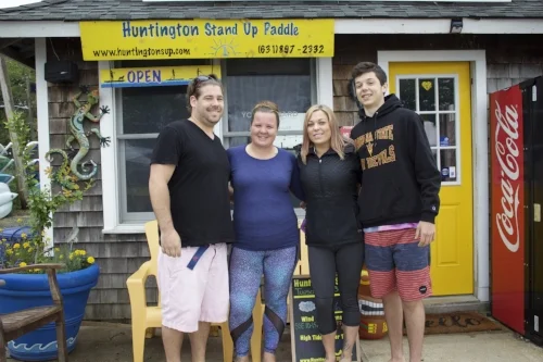 Huntington Stand Up Paddle prepares for the upcoming season, as the summer inches closer. Pictured from left to right, volunteer Rich Buttine, owner Katie Buttine, instructor Jackie Adamcewicz and volunteer Christian Cuciniello.