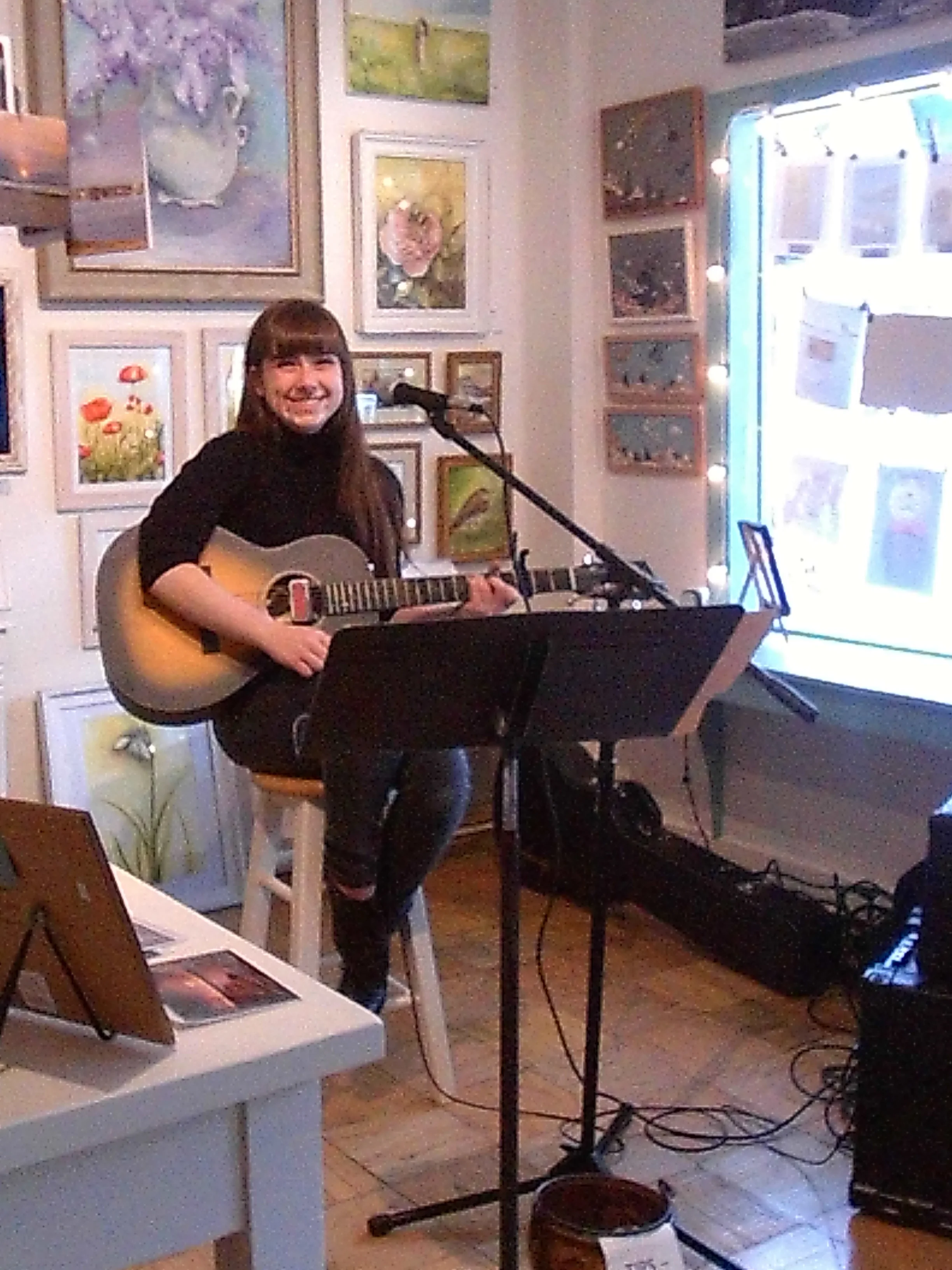 Singer/guitar player Dori-Jo Gutierrez, 16, of Northport, performed at ArtWalk Northport this weekend. Long Islander News photo/Linda Delmonico Prussen