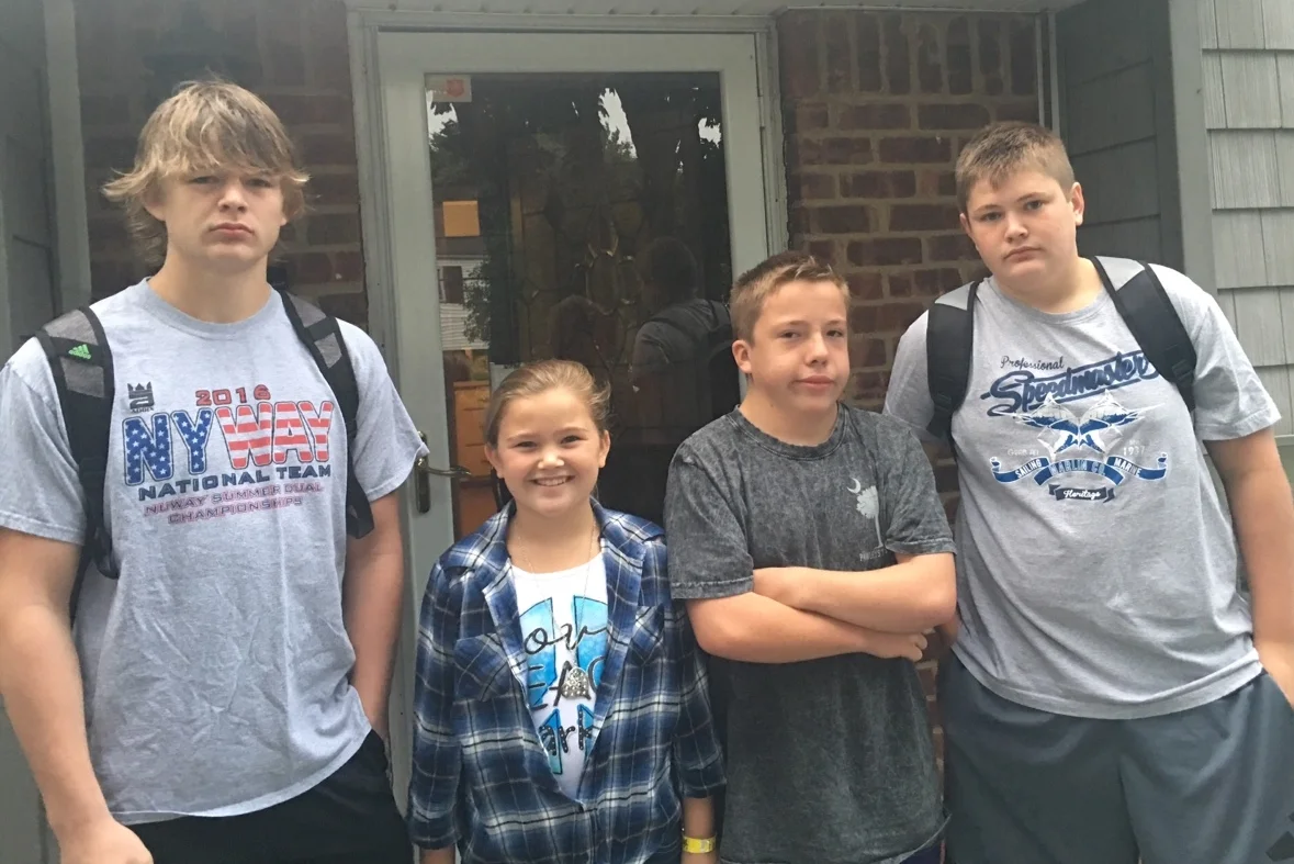From left to right: Declan Holt, 9, 4th grade,Fiona Holt, 7, 3rd grade, Richie Sanborn, 9, 4th grade, Kathren Grace Mellon, 6, 1st grade, Pulaski Road School.