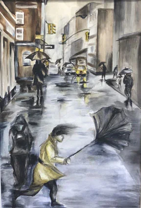 /Walt Whitman High School student Reyha Mete depicts city spaces in “Stuggle.” She plans to pursue art in college.