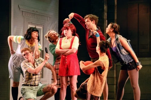 Meaghan Maher, center, in the John Engeman Theater’s children’s production of “Freckleface Strawberry” as the lead Strawberry. Also pictured, from left, are Marielle Greguski, Andrew McCluskey, Rita Sarli, Matthew Rafanelli, Jacqueline Hughes and TracyLynn Conner.