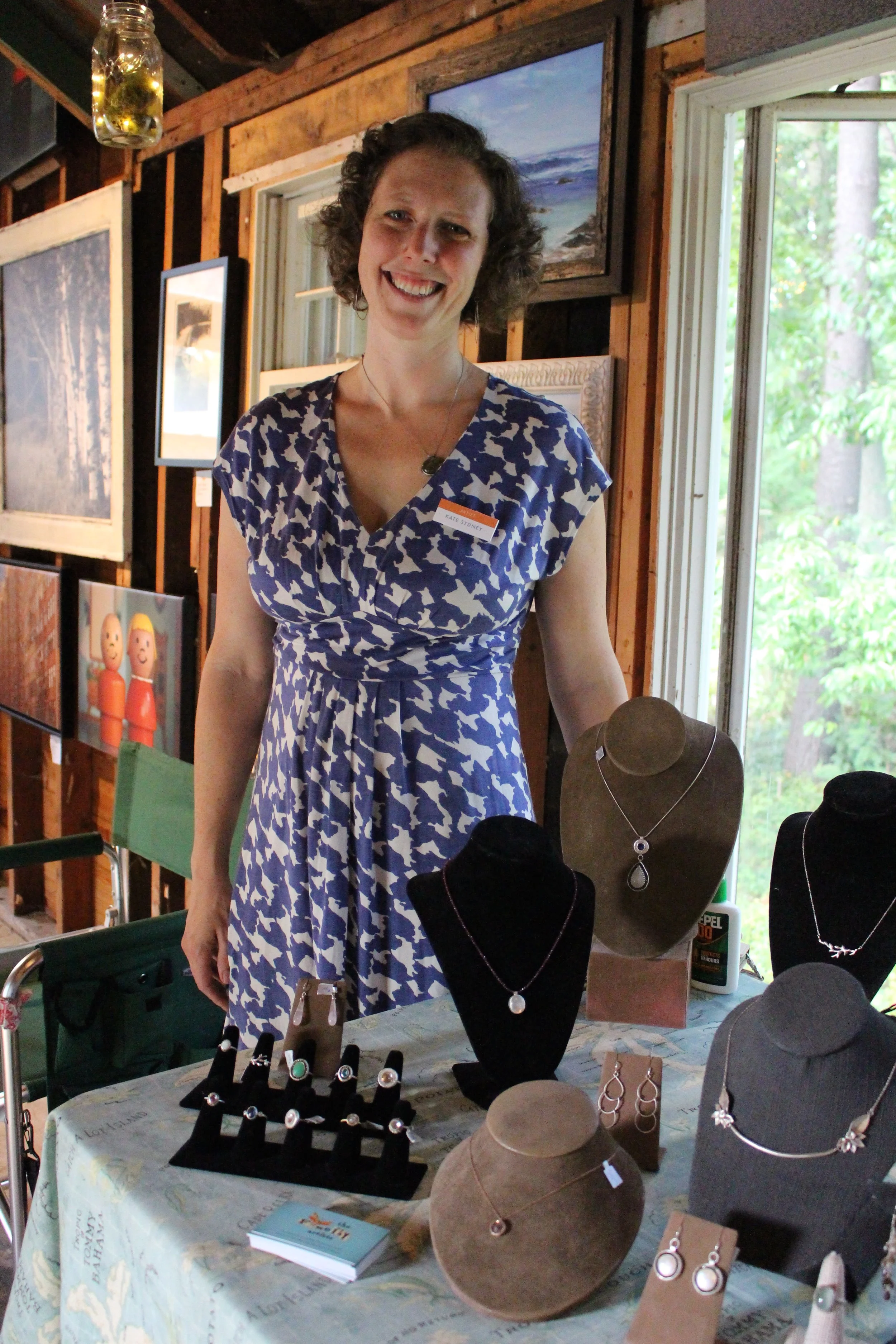 Kate Gilmore, co-founder and managing partner of Firefly Artists, stands next to her table of jewelry at the Firefly Artists’ pop-up gallery event that was hosted in Eatons Neck over the weekend.