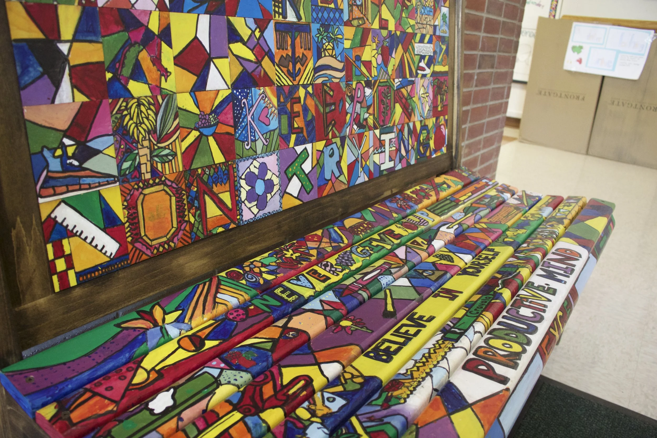 Sitting in the main entrance of Cold Spring Harbor School District's West Side School is a colorful bench that was crafted as a means to remind students to show kindness and grit.