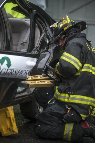 Using hydraulic tools, such as the Jaws of Life, the firemen raced against the clock to efficiently and safely pry open one of the 30 mangled cars in the area. Judges took note of mistakes and promptly recorded them in their notes.