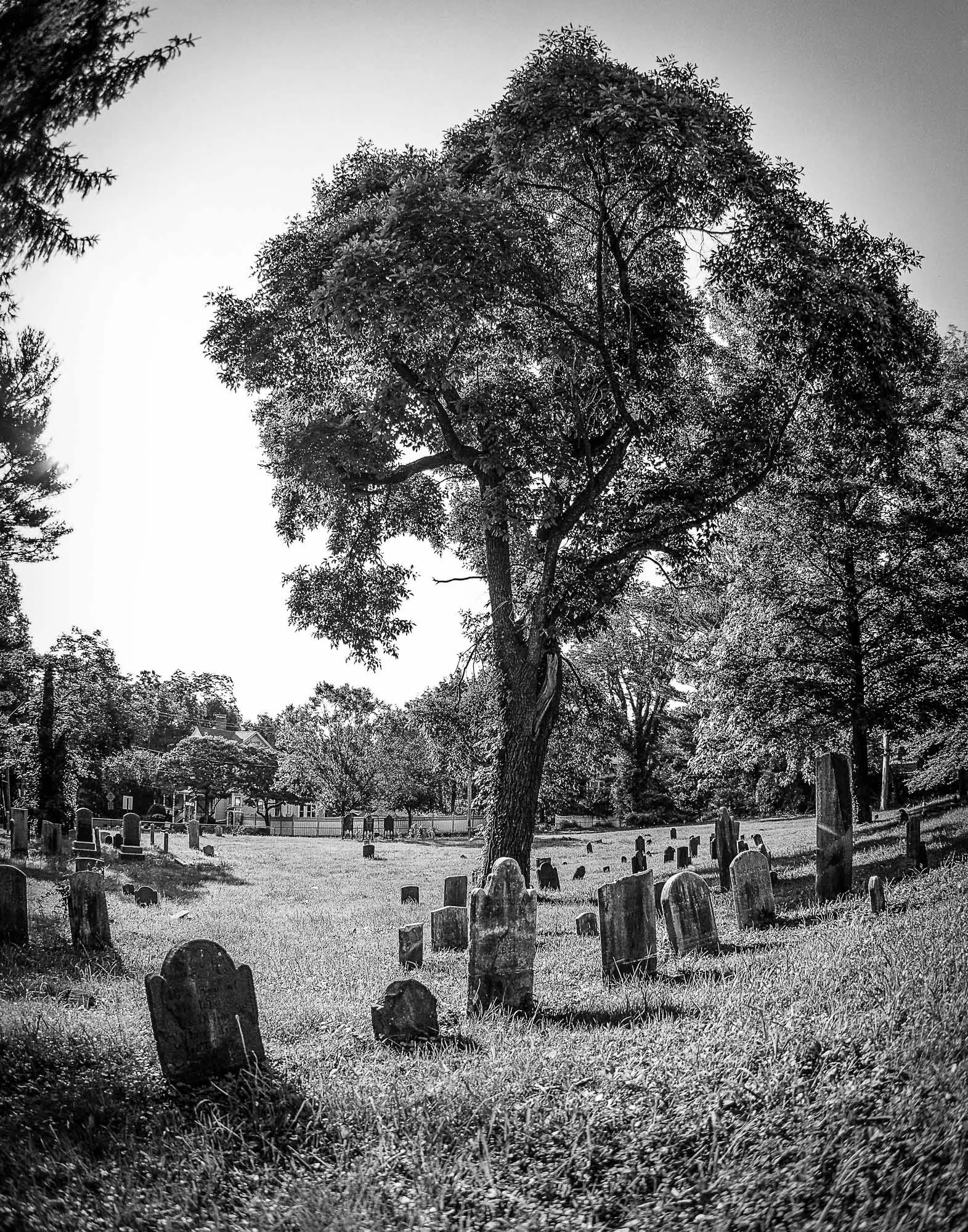 “Old Burial Hill Cemetery,” by Kenny Ng, gives a dynamic approach to photography by using a fisheye lens to distort the image. Photo by Kenny Ng