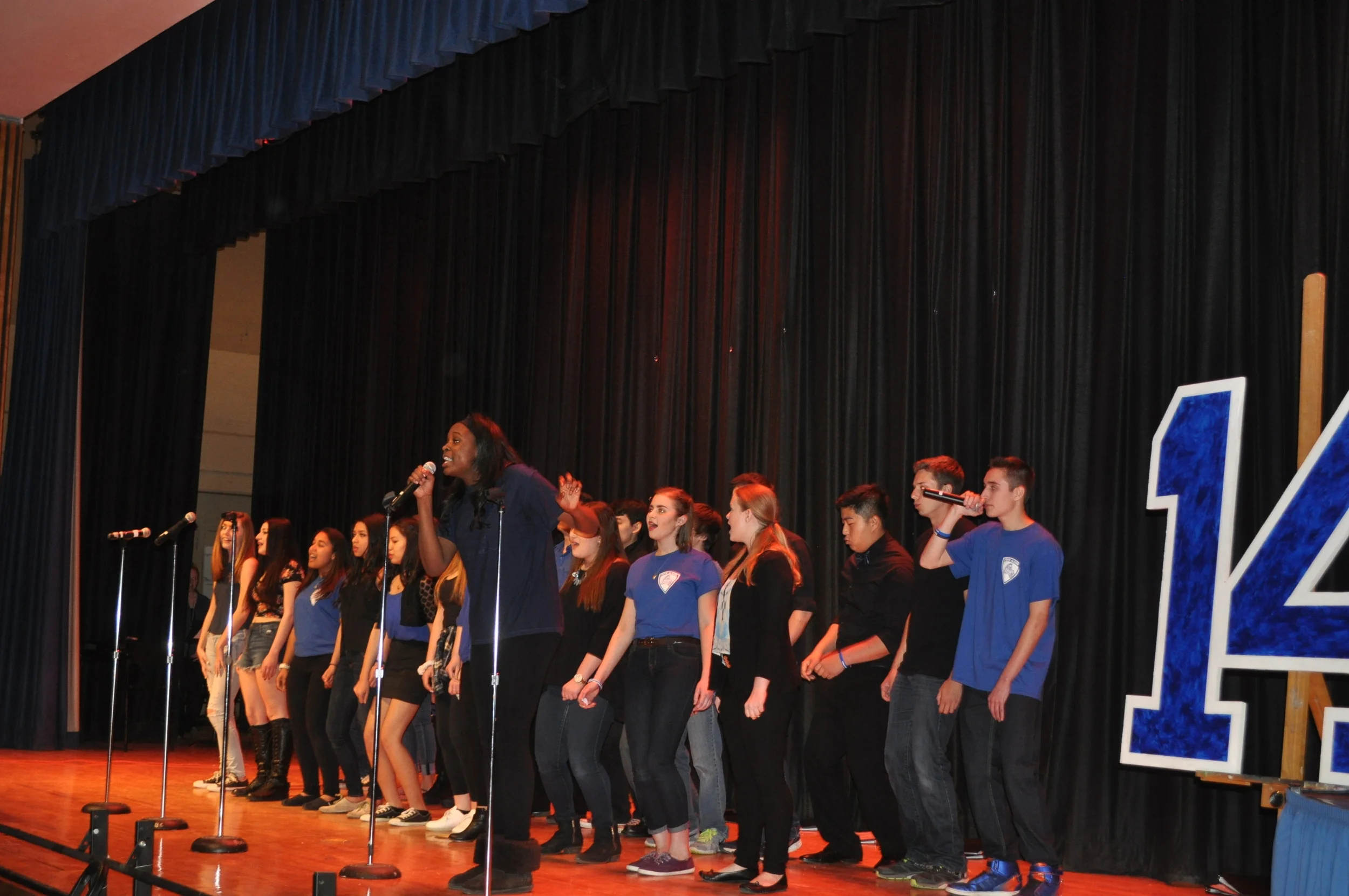 The concert began with a performance of the Marvin Gaye standard, “What’s Going On,” performed by the high school jazz band; Sean played in the middle school jazz band as a youngster. An eclectic set list followed, veering from songs by Matisyahu to One Republic and Ed Sheeran and Fun.