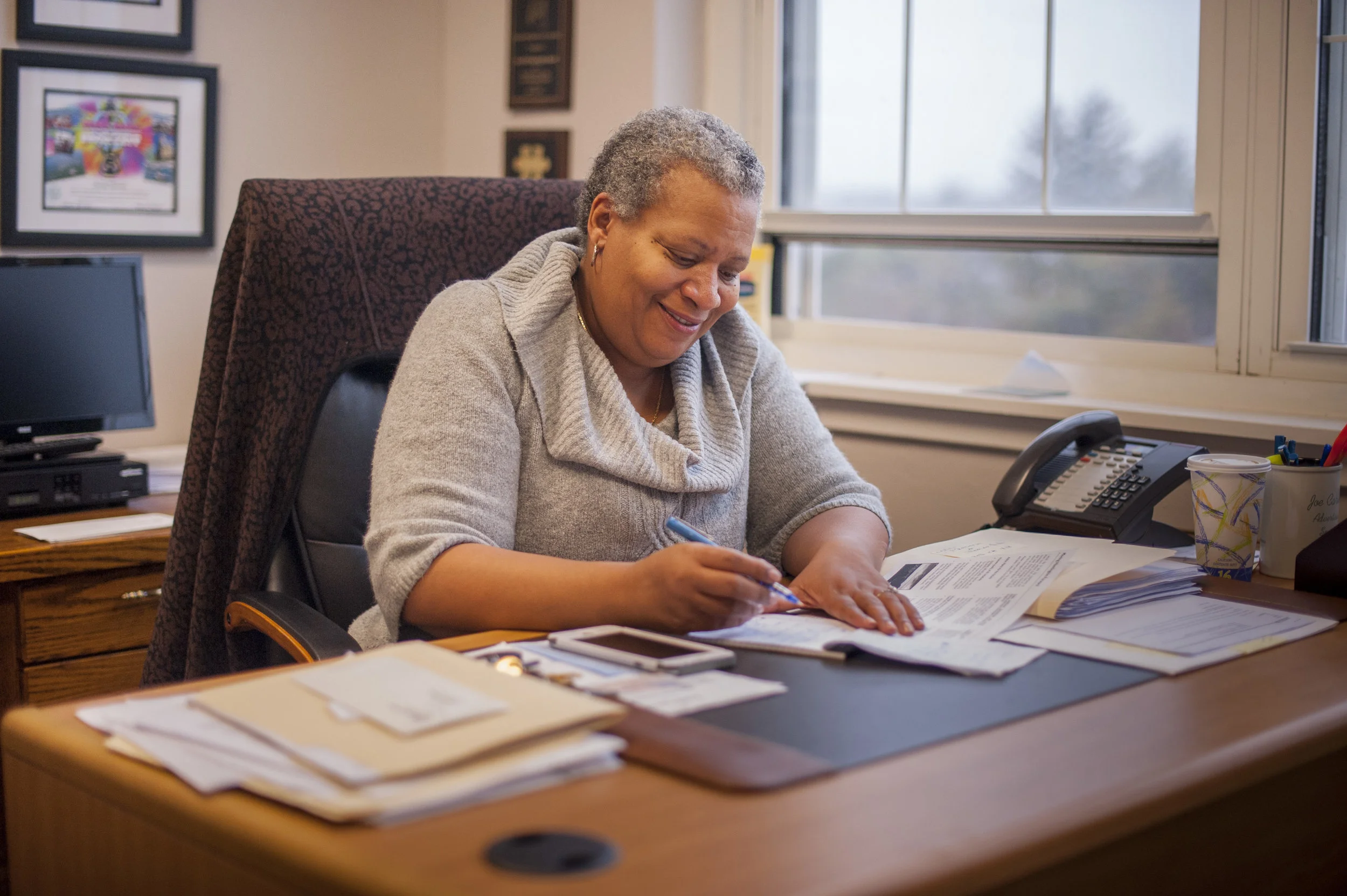 Tracey Edwards, a Huntington councilwoman, is pictured in her office at Huntington Town Hall.