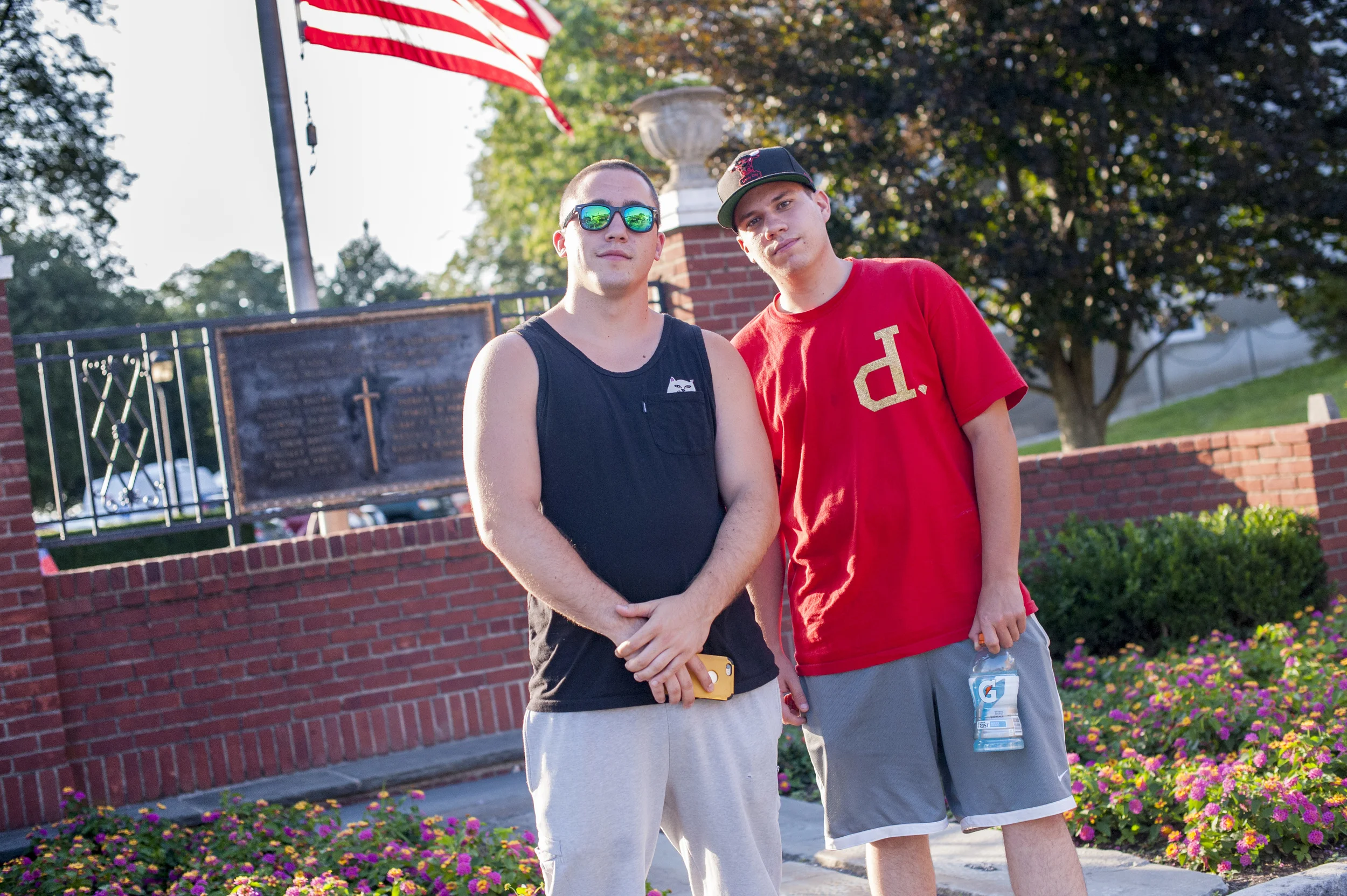 The pair, posted up near the Northport World War II Memorial outside of the village park, stared at their illuminated smartphone screens, concentrating and tapping rapidly.