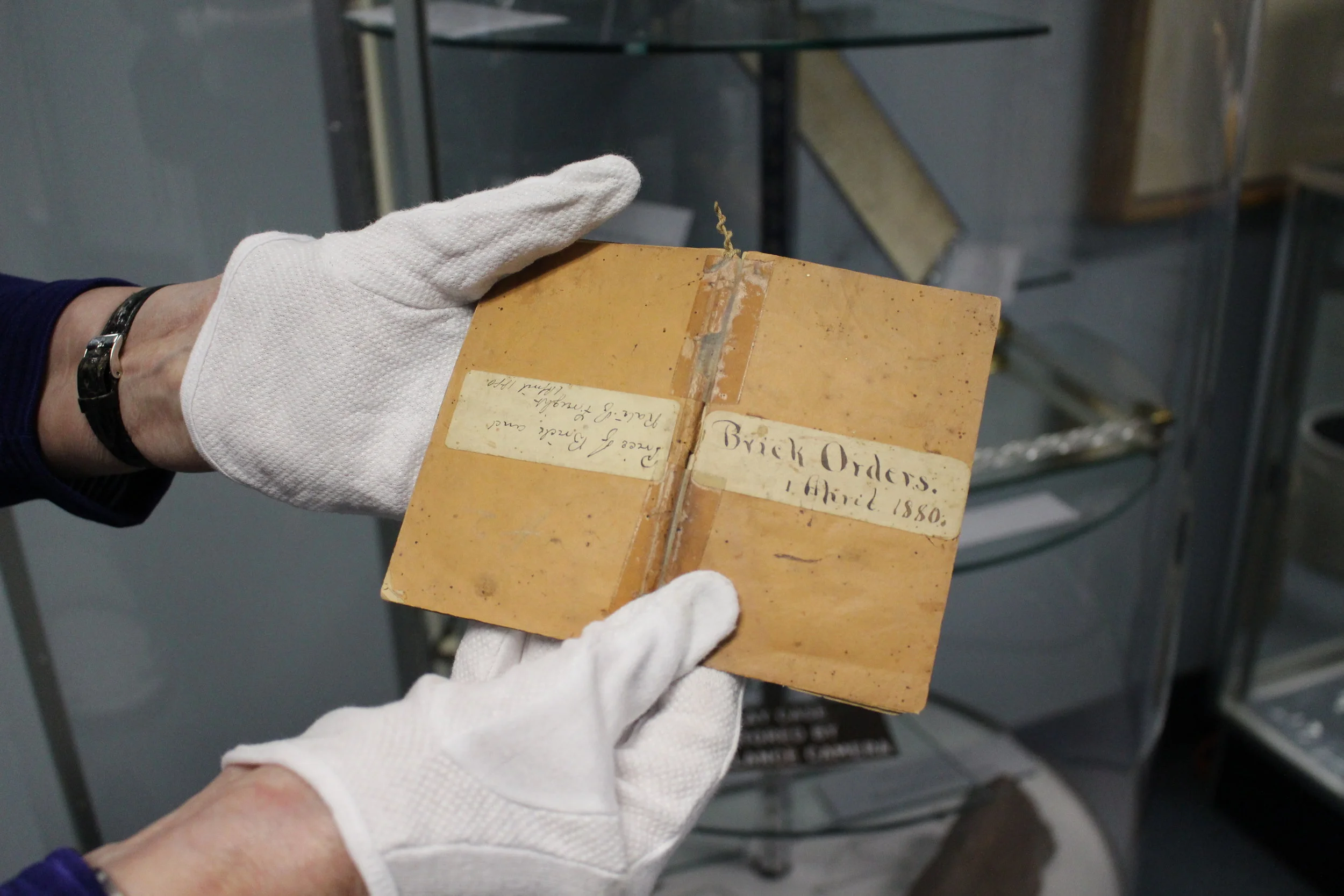 The “A Sea of History-Our Maritime Heritage” exhibit at Huntington Town Hall features a book of brick orders that was dated in April 1880.