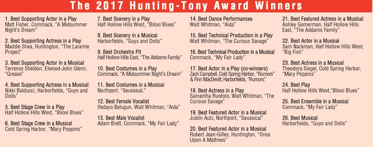 The Town of Huntington hosted Monday its seventh-annual Hunting-Tony Awards, a night honoring the stars of this school year’s high school theatrical productions.