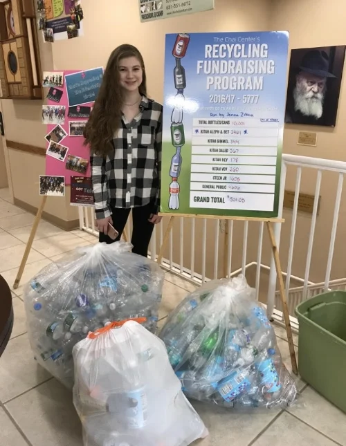 /Janna Zilkha, 15, of Dix Hills, recycled more than 10,000 bottles through a program organized with The Chai Center Noskin Hebrew School students, and was able to donate $500 to The Friendship Circle.