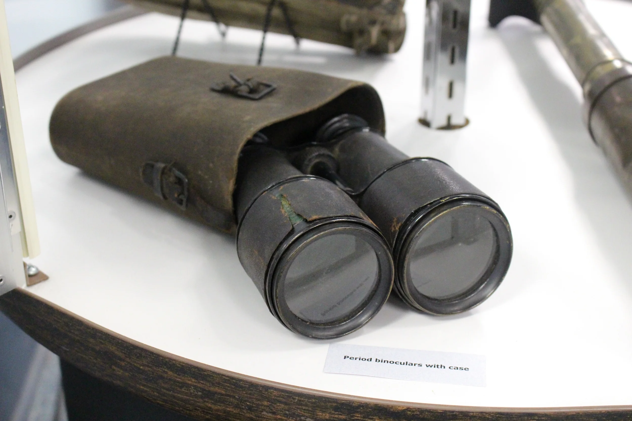 These Civil War binoculars were cracked in battle during the Civil War and can be found at a Huntington Town Hall exhibit.