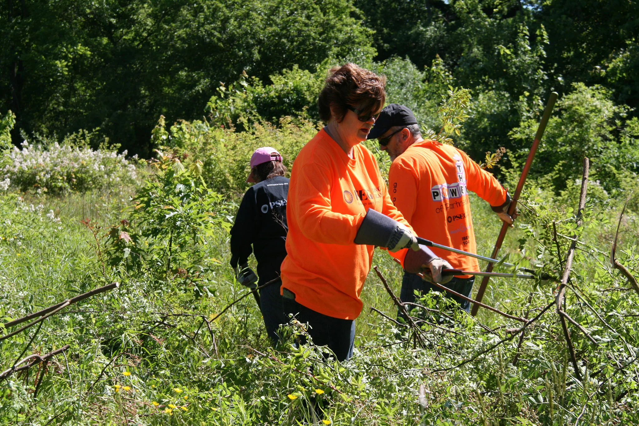 PSEG Long Island employees recently volunteered at the Carpenter Farm Park in Greenlawn to help restore the park’s natural ecosystem, cleaning up trash and clearing an invasive plant species.