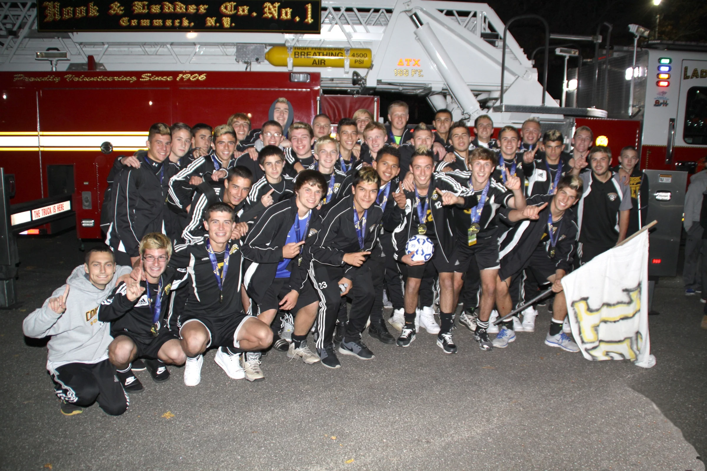 When they arrived home, their bus having been escorted by the Commack Fire Department from the LIE north to Commack High School, the Cougars were met by “hundreds of people,” according to a school spokeswoman.