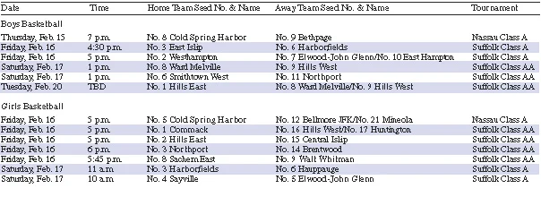 The remainder of the schedule for today and this weekend is printed below. To keep up with the brackets, visit Nassauboces.org for Nassau or Sectionxi.org for Suffolk.