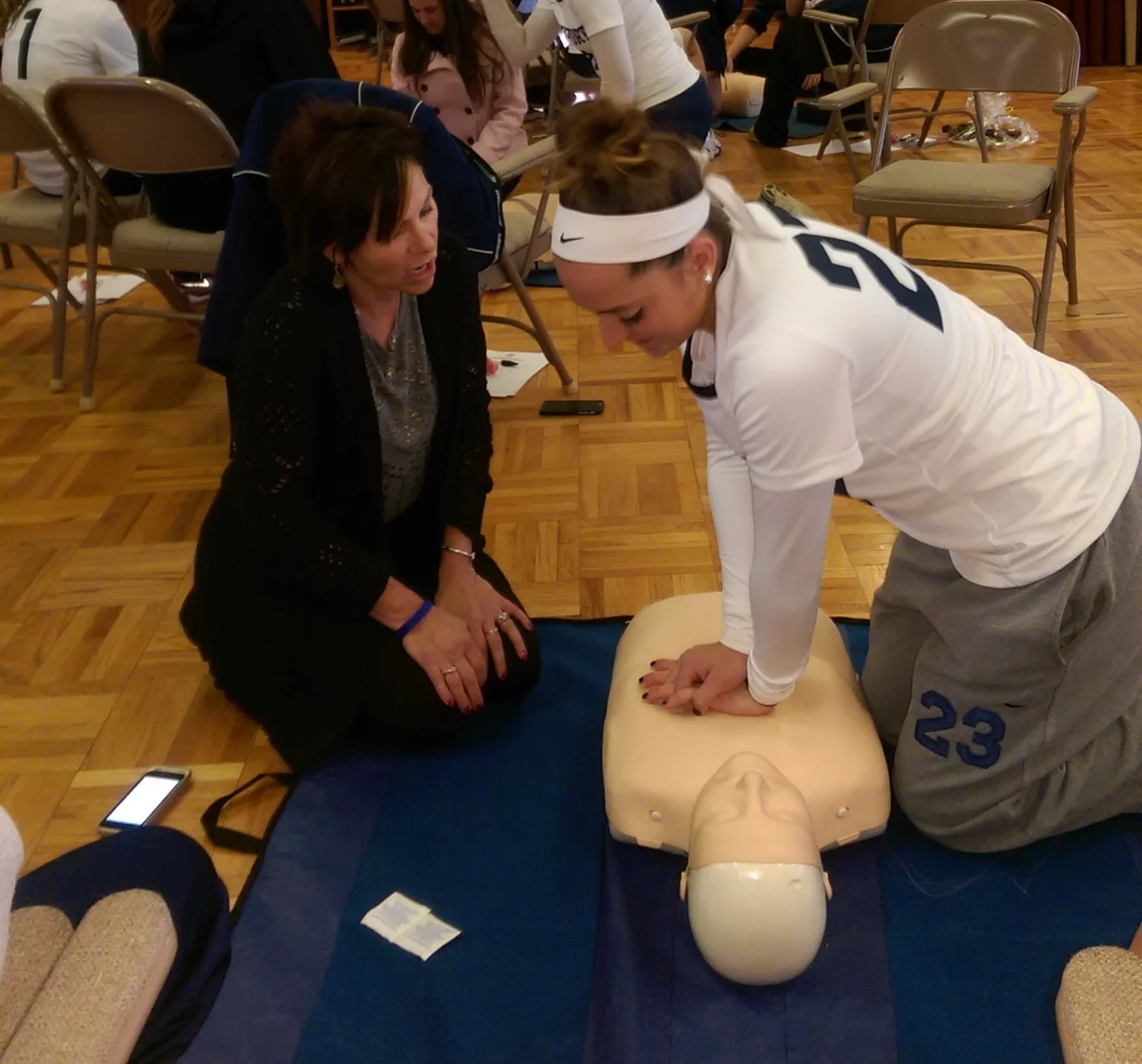 /Northport High School’s varsity girls lacrosse team won its second game in a row on Monday, but the night was far from over for the hard-working group of ladies. The whole team moved straight from the game to what they’re calling “The Acompora Challenge” for CPR/AED training.