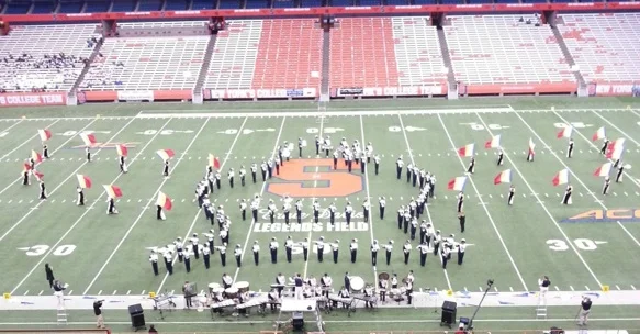 After a Saturday morning rehearsal at Huntington High School, the Blue Devils hit the road for Syracuse. The band had a Sunday morning rehearsal at Liverpool High School before heading to the Carrier Dome to perform at 2:38 p.m.