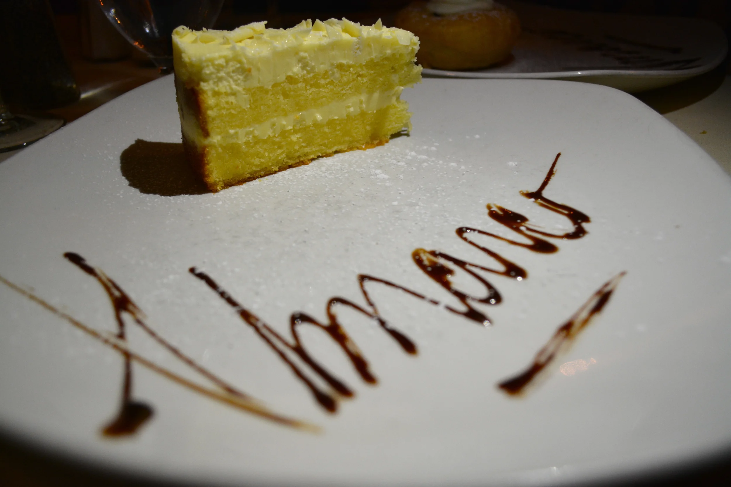 Options include lemon cake ($6) and an Almarco favorite, the St. Joseph’s pastry ($6). The lemon cake is light and sweet, but not too sweet. The St. Joseph’s pastry, a warm and donut-like Zeppola, is filled with Cannoli cream and topped with a cherry.