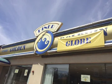 A banner on the sign of the former Golden Dolphin Diner in Huntington shows the diner’s name has been changed to the Golden Globe.