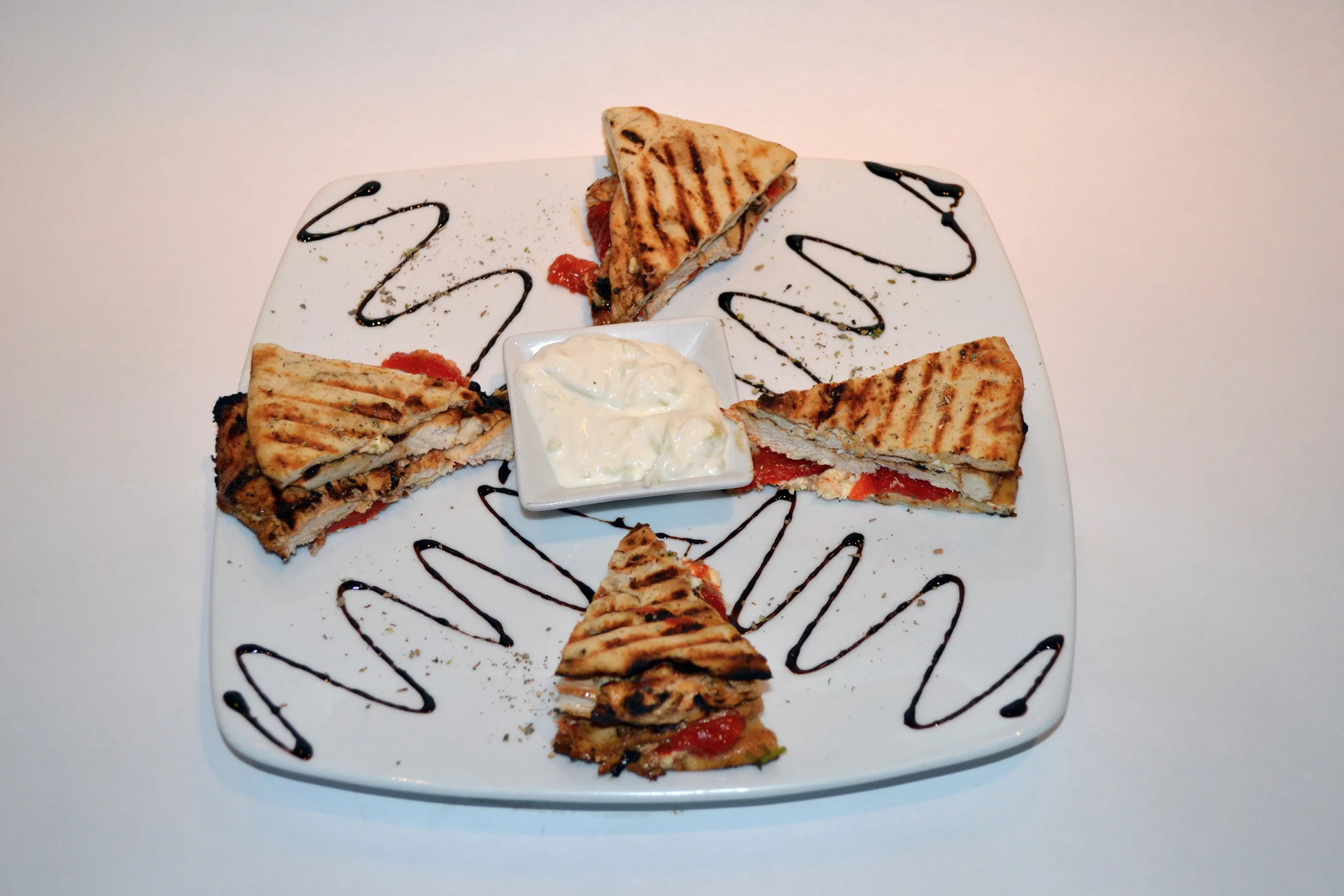 On the menu: The Georgie, grilled chicken, red peppers, feta, and balsamic vinegar on grilled pita