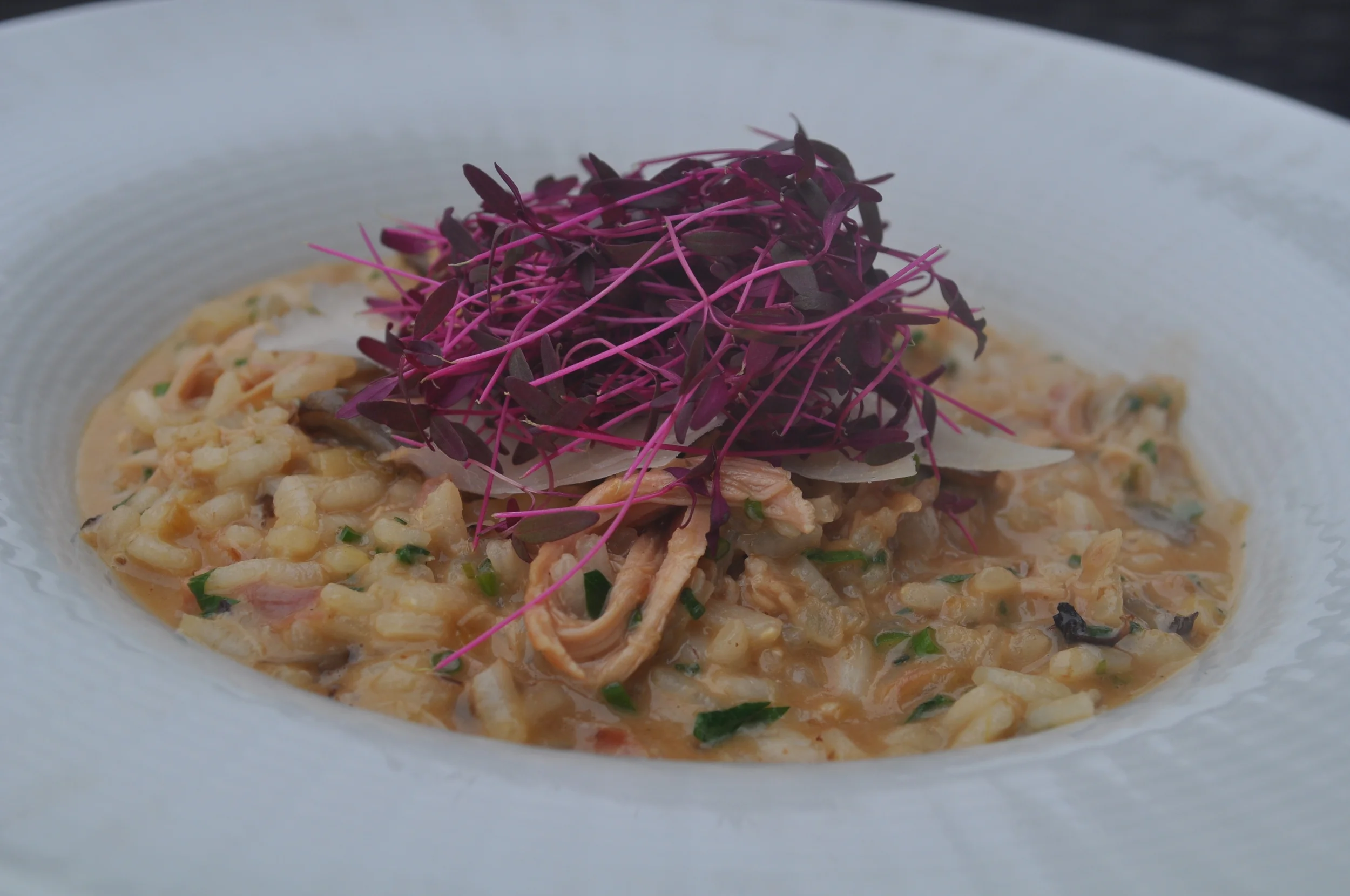 Duck later makes an appearance on a light pasta dish – the duck confit cavatelli ($14), served in jus with tomatoes and shaved Brussels sprouts. Wild chicken risotto ($14), featured in a rotation of risottos of the day, is another standout selection bursting with nutty and earthy flavors.