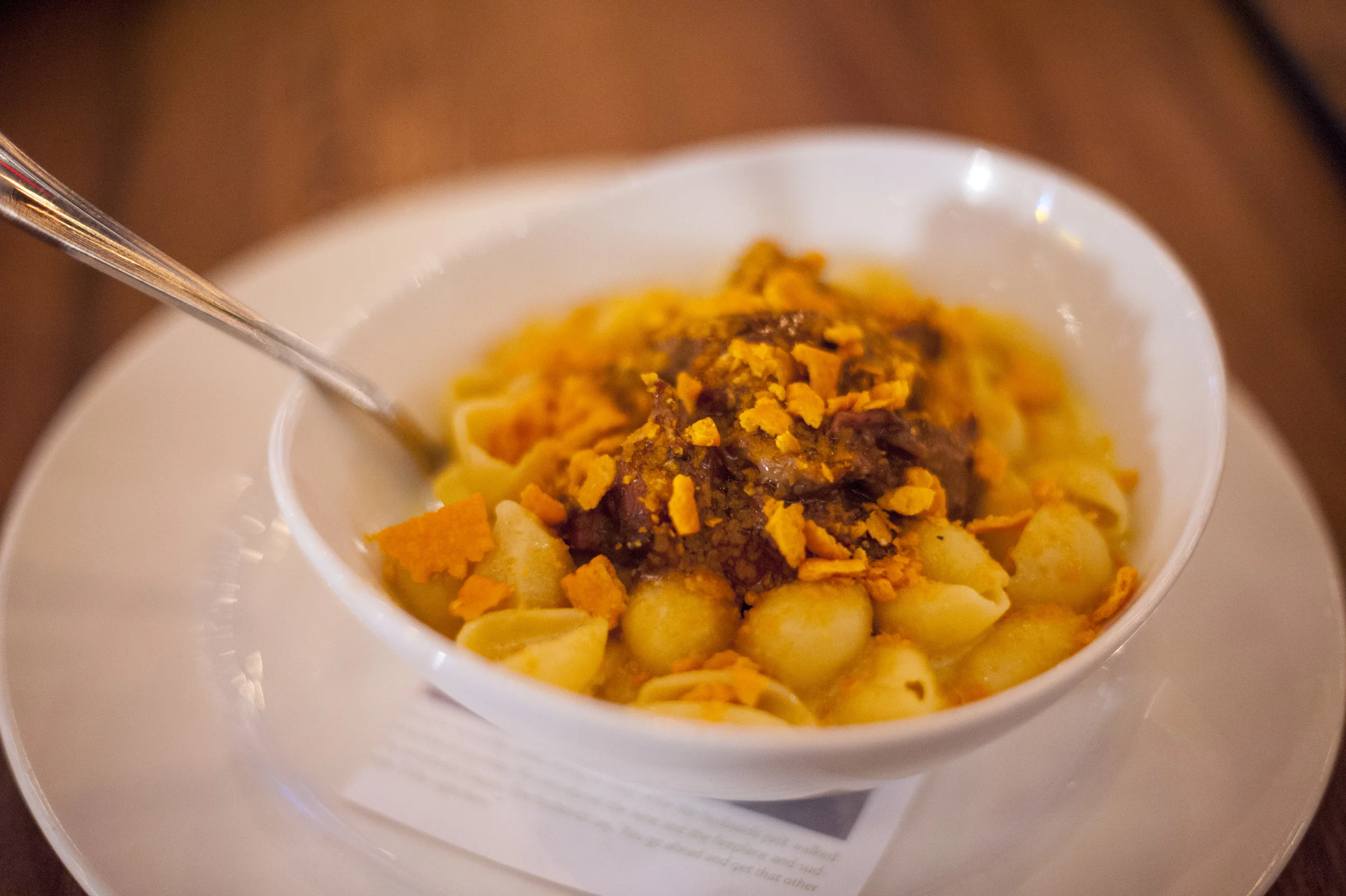 When designing his menu, Crabtree said his mac-and-cheese-fanatic daughter asked if he’d put the staple on his menu. He did, but he put a unique spin on it. The Short Rib Mac & Cheezit ($15) features white cheddar from the Vermont-based Cabot Creamery, succulent short rib and a topping of Cheez-it crumbles. The cheese is gooey with just a bit of tanginess.