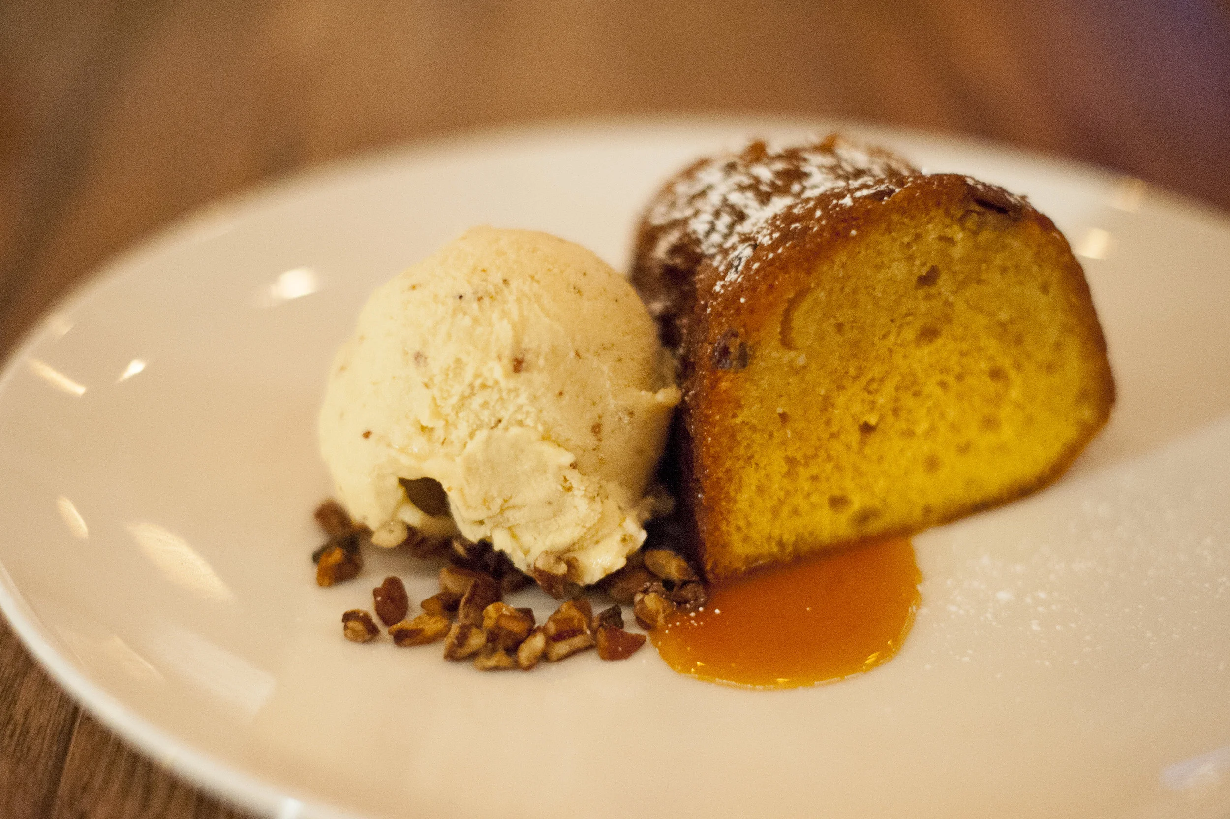 Crabtrees’ Monkey Rum Cake doesn’t hold back on the sweetness, but is balanced by the vanilla gelato and bits of pecan for a rich, textured experience.