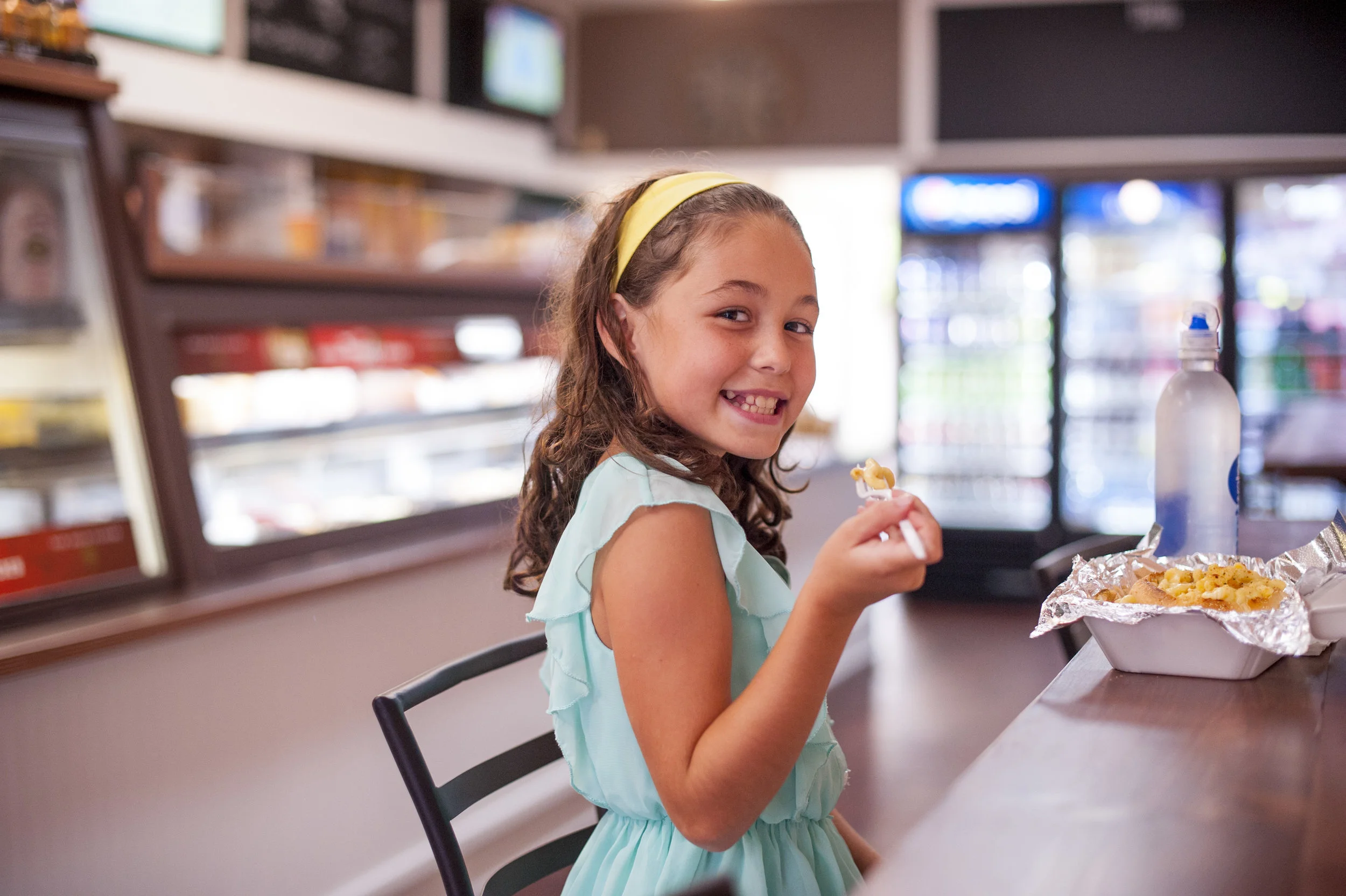 Sunny Salese, daughter of Village Hero owner Michael Salese, enjoys her delectable namesake Sunny’s Mac ‘N Cheese in a bread bowl
