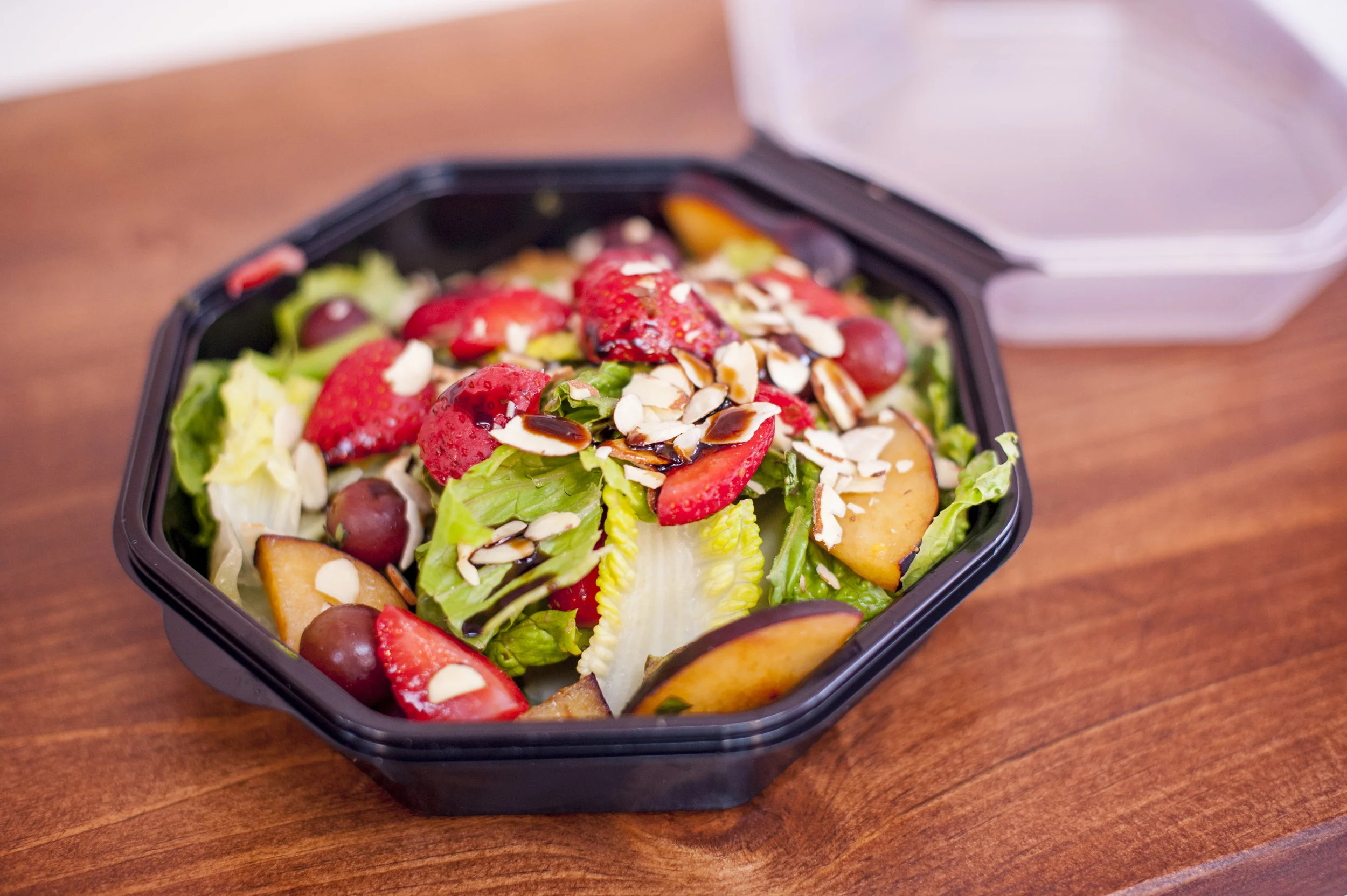Start your course with a Spring Salad, bursting with the fruity flavors of plums, strawberries and grapes.