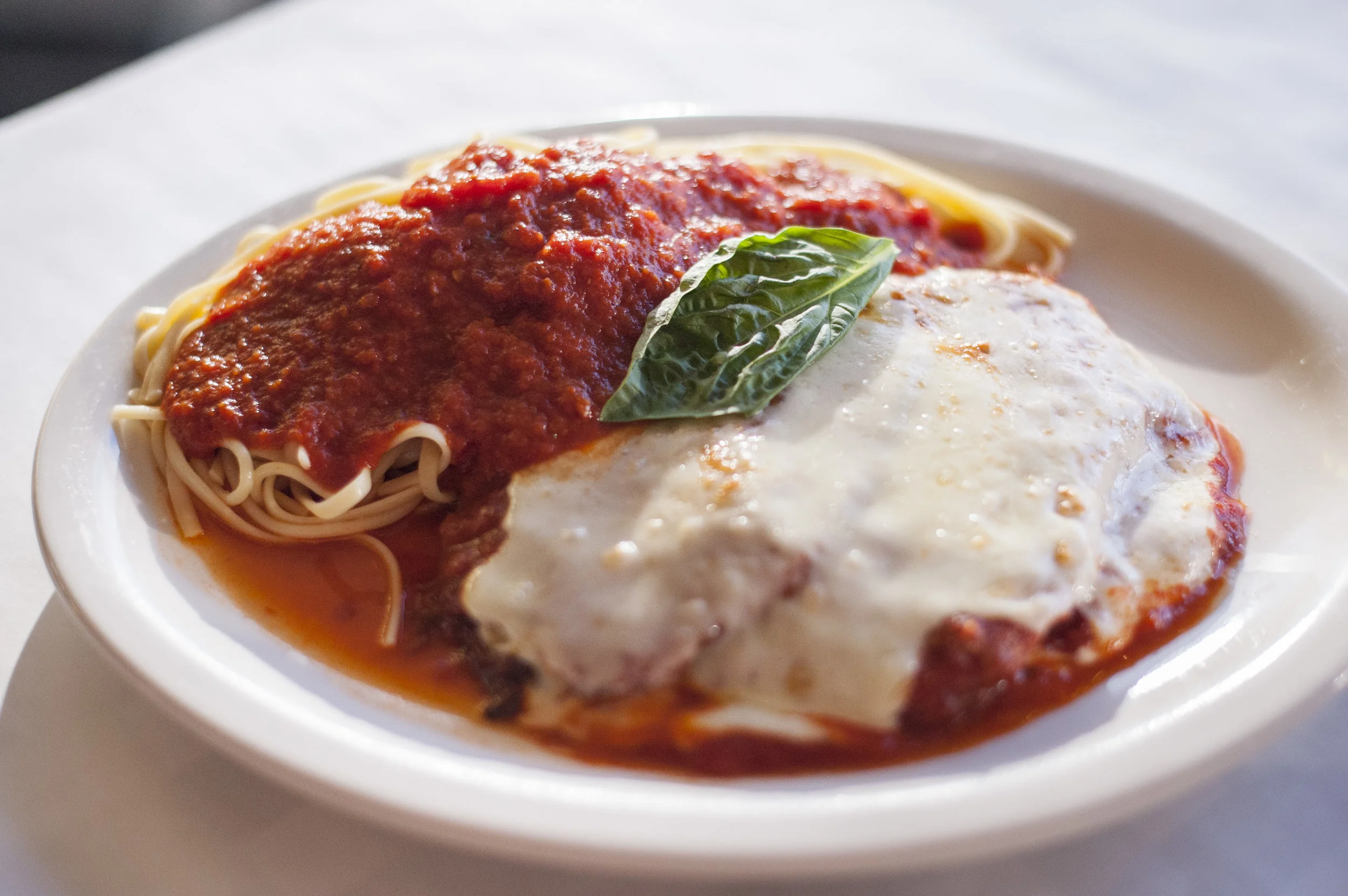 The one-of-a-kind Eggplant Parmesan with linguini features plum tomato sauce, topped with melted mozzarella cheese, all sans breadcrumbs, lending itself to a purer, earthy experience.