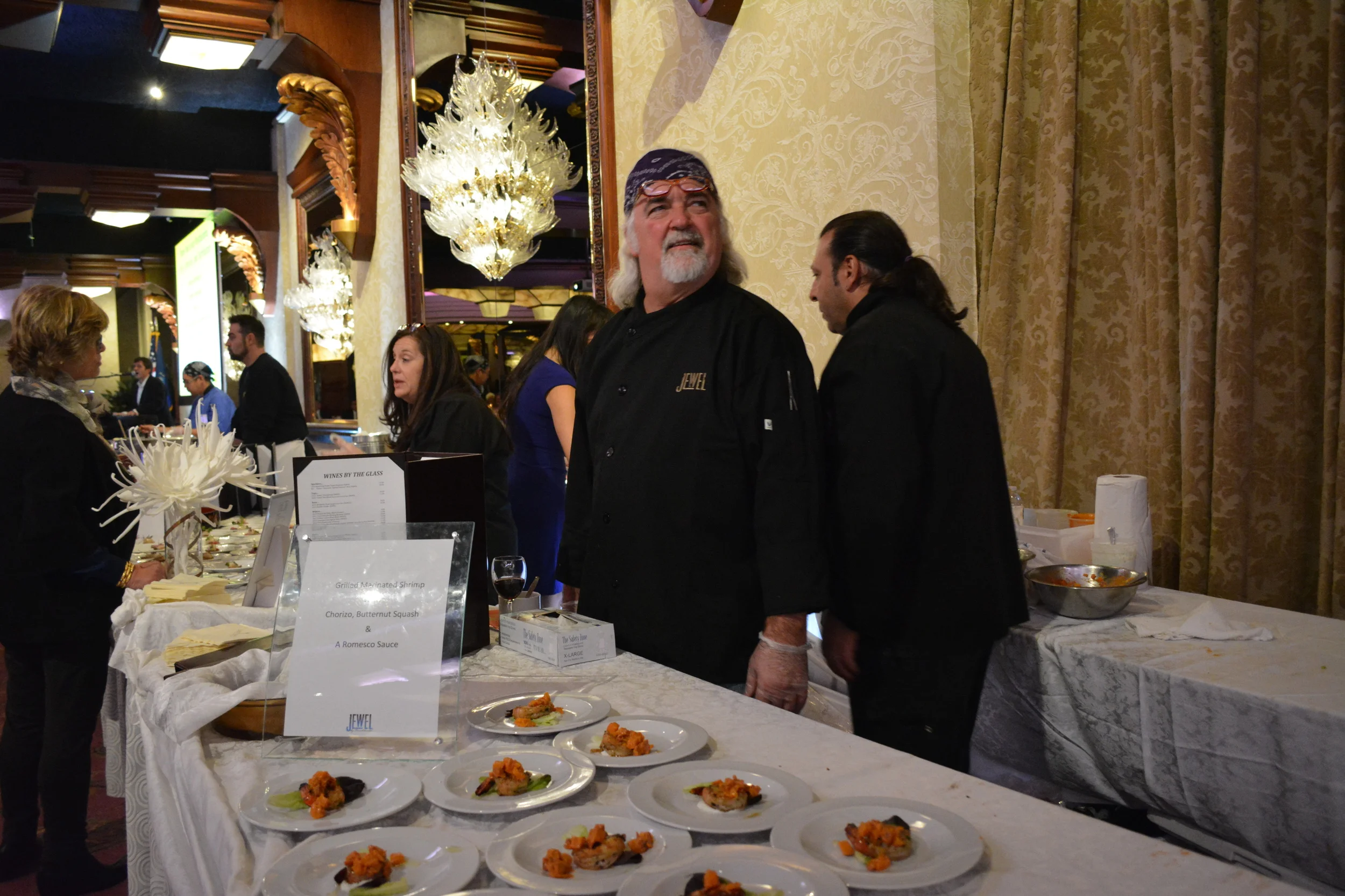 Also represented at the event were Huntington's Storyville American Table and Tutto Pazzo. Storyville owner and Executive Chef Brian Finn, along with the restaurant's Mike Wallace and Thomas “T.C.” Curry, handed out Mardi Gras beads and served such colorful dishes as Shrimp Remoulade. Tutto Pazzo's table featured a tray of appetizers on toothpicks.
