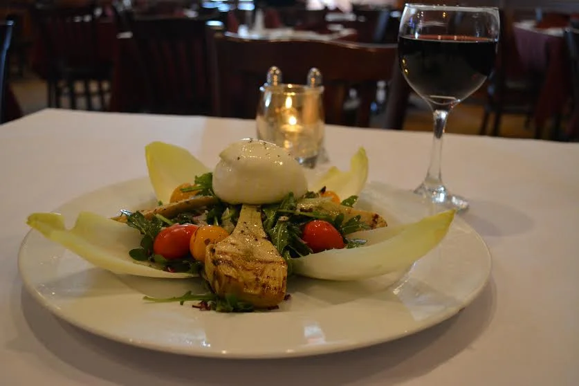 For flavorful harmony, check out Burrata & Carciofo ($10), a salad of arugula, endive, radicchio and tomatoes. The smoky grilled flavor of fresh-grilled artichoke hearts, finished with a splash of mandarin-orange olive oil, is a perfect blend.