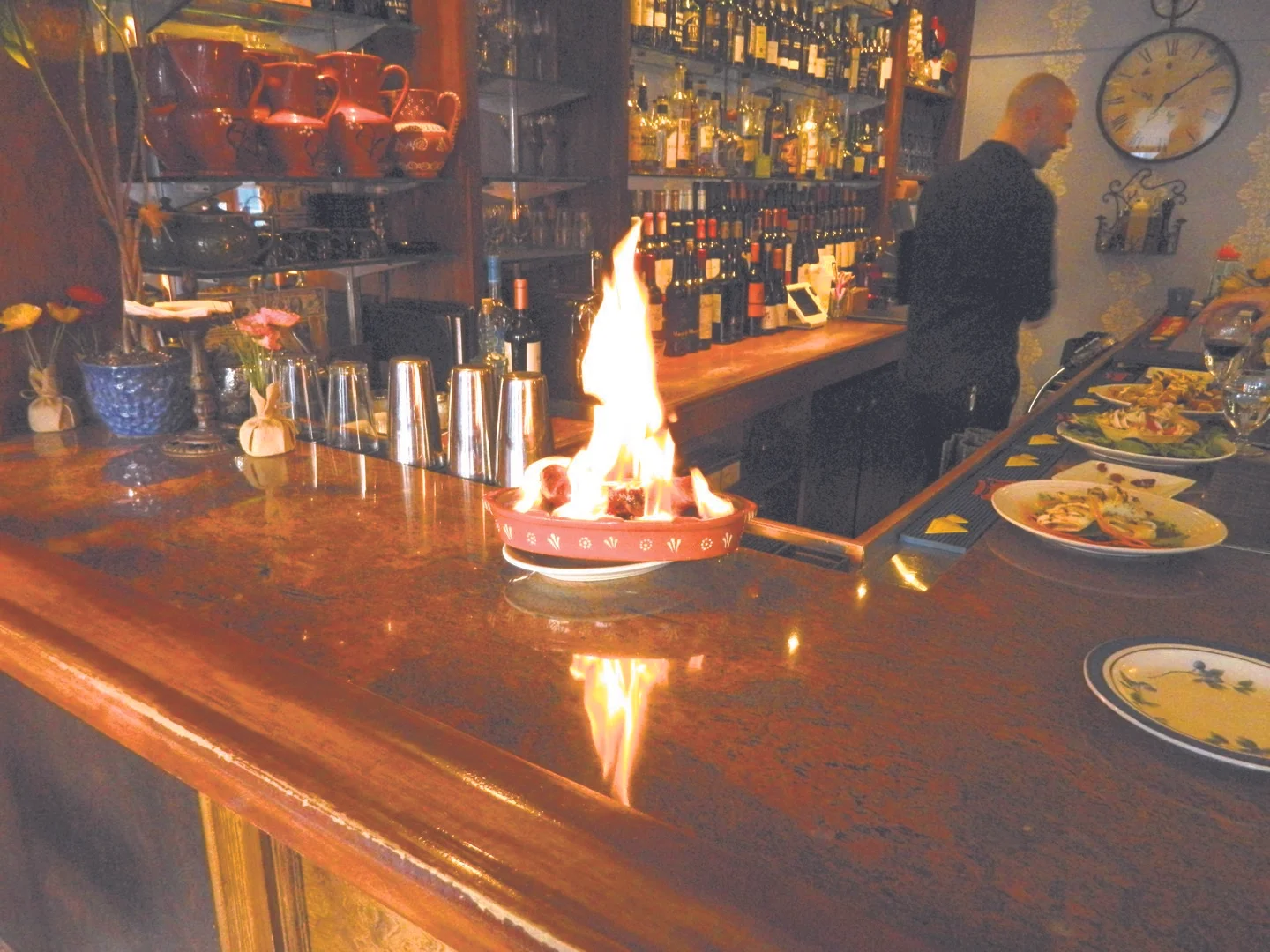 The Chourico na Brasa is Fado’s flame roasted chourico that comes with a show.