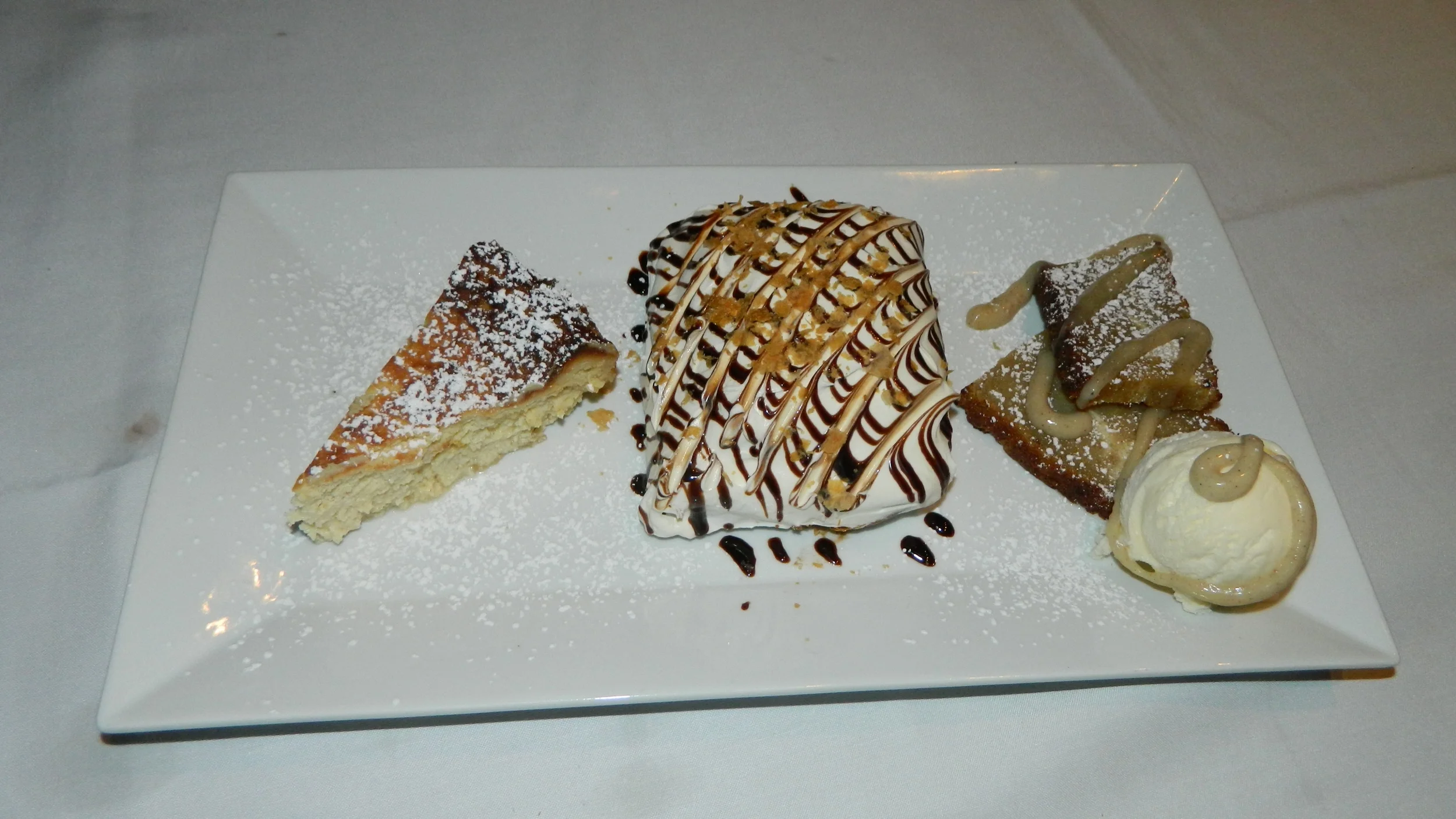 Italian cheesecake, Napoleon and banana bred pudding with vanilla ice cream.
