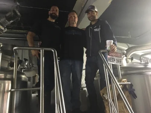 BREWERIES TEAM-UP: Sand City Brewing Co. posted this photo to its Facebook page last week, announcing a collaboration with Steve Pominksi, center, owner and brewer of Farmingdale-based Barrage Brewing Company. He’s flanked by Sand City’s Billy Powell and Kevin Sihle. Keep up with them at Sandcitybeer.com.