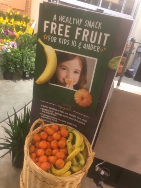 Free, fresh fruit was available for kids ages 10 and under at the Huntington Stop and Shop last week.