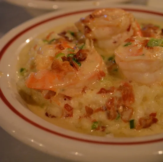 If you have never had grits before, the grits at Storyville American Table are a first experience that will abolish fear of and confusion about the side dish with the notorious reputation for strange consistency and pasty taste.The grits at Storyville, highlighted in the Shrimp and Grits entree option ($17.95) are made with cheese and bacon and taste like intricately textured mashed potatoes.