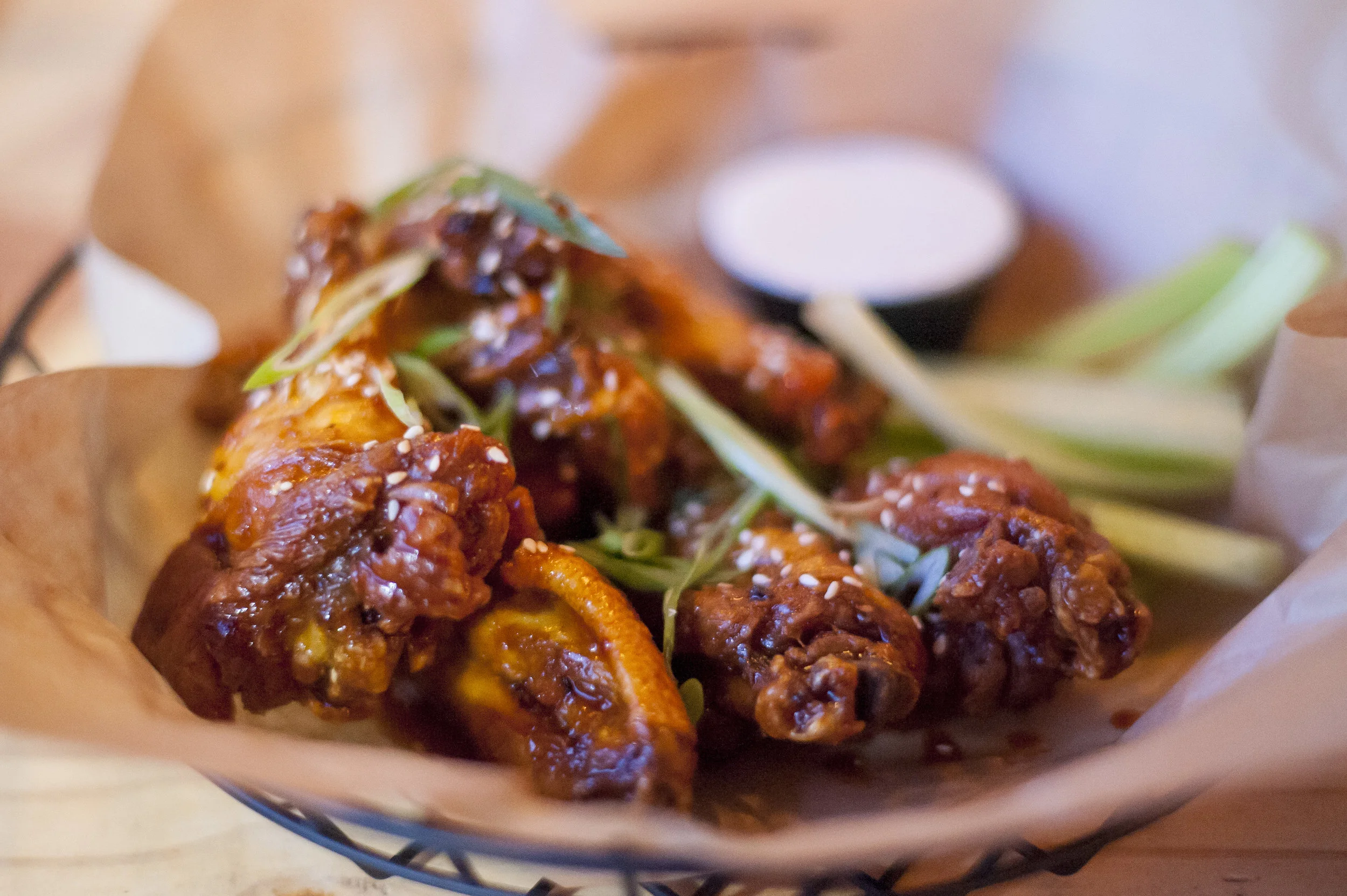 The Sesame Buffalo Wings are sweet and spicy, bringing together flavors and spices of Asian cuisine with a classic buffalo taste.