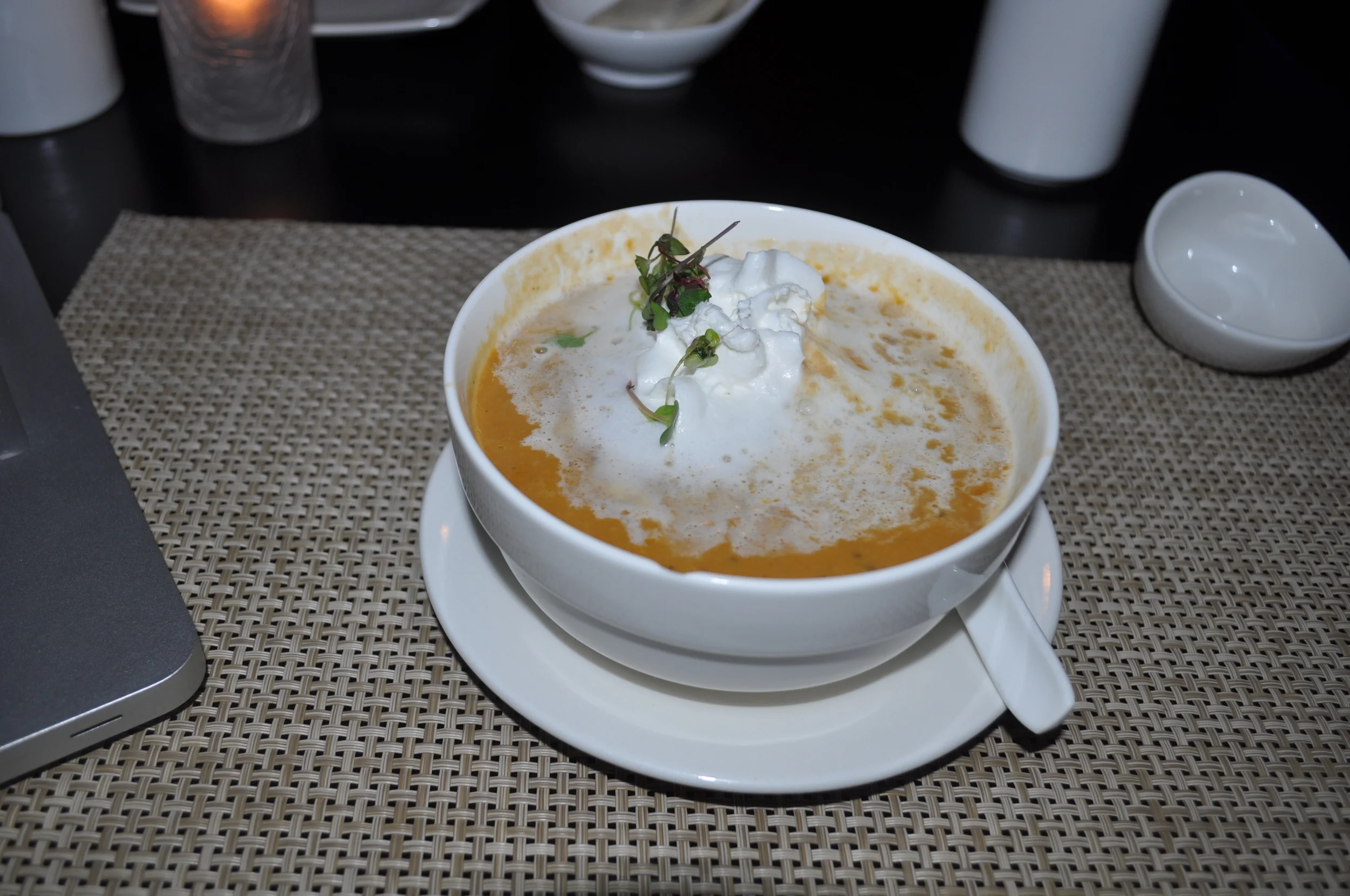 Take the 110 Japan Homemade Bisque, for instance. In seafood guise ($7) it’s a peppery medley of shrimp scallops and a hint of chili in an orange-hued broth, juxtaposed playfully with an unexpected dollop of sweet, light whipped cream.
