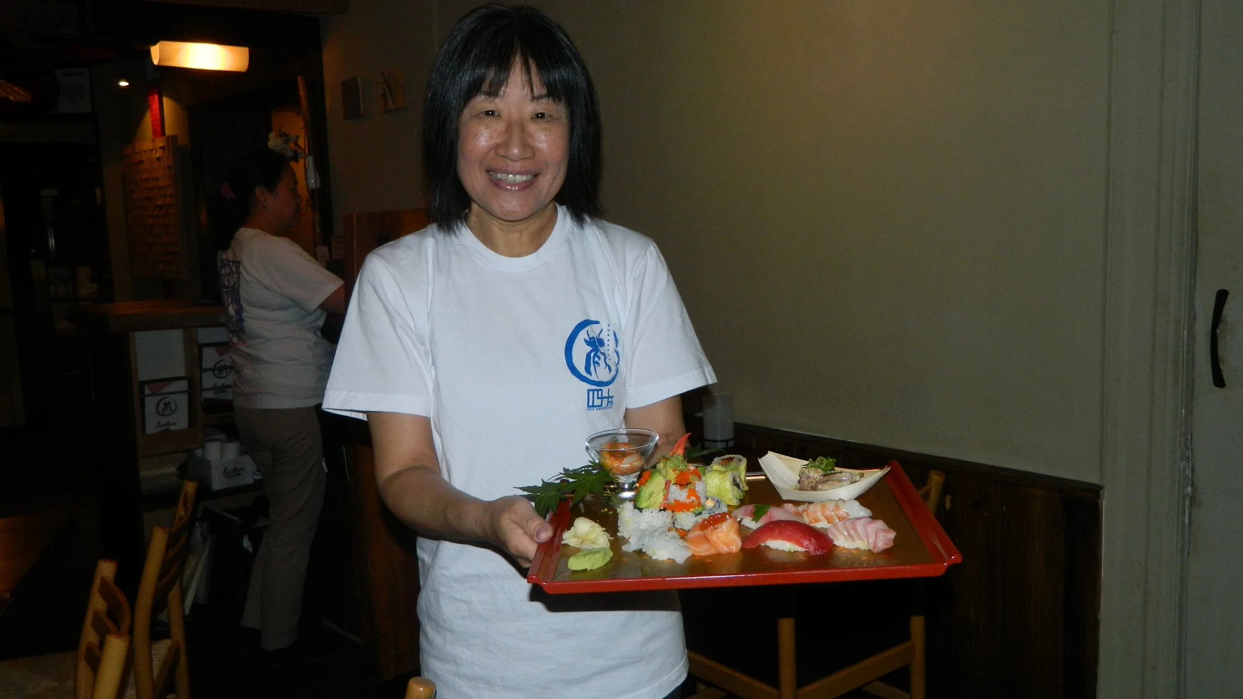 Owner Ayano Yamada presents the Omakase sushi platter.