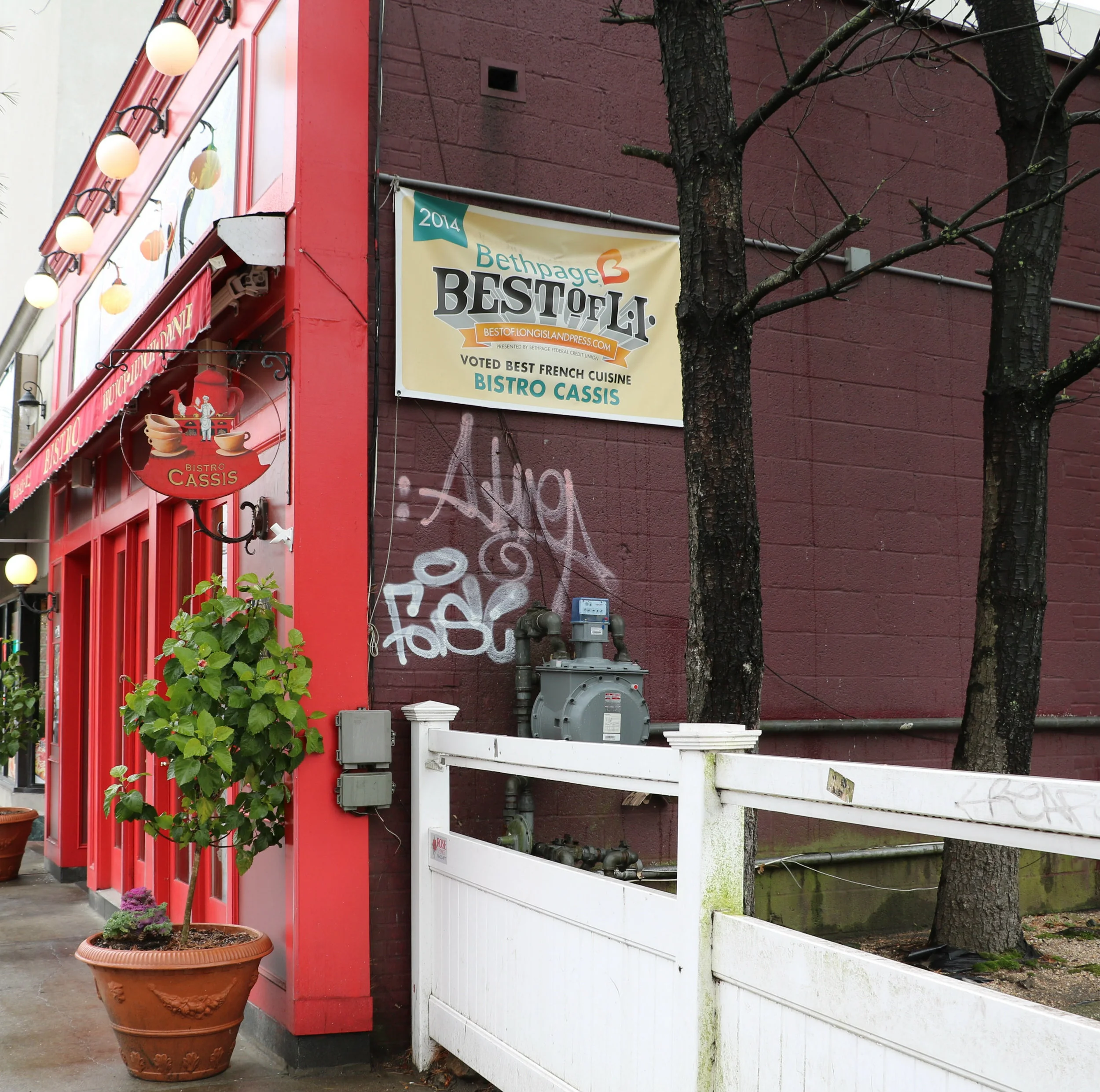Bistro Cassis was among at least 10 businesses in Huntington “tagged” by graffiti vandals last week.