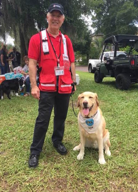 Tom Hlenski, a Long Island Red Cross volunteer, is pictured with Jack, a therapy dog. Hlenski, of Huntington, returned home Wednesday after a weeklong stint in Orlando, aiding those affected by the June 12 shooting at Pulse nightclub.