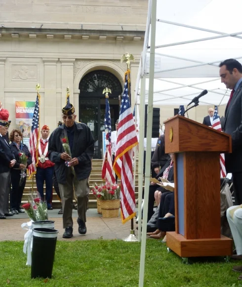 /As the names of those killed were read aloud, a veteran placed a single rose in a container. Long Islander News photos/Peter Sloggatt