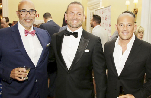 /Lloyd Neck resident Asaf German’s “Racing to a Cure” event held at Ferrari Maserati of Long Island raised over $70,000. Pedro Velez, left, and Christopher Chiarenza, right, were among more than 400 guests who joined German, center, at the event.