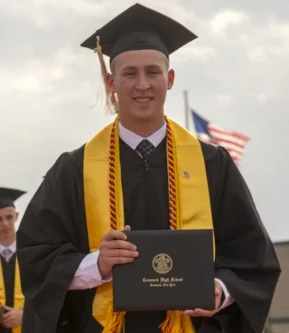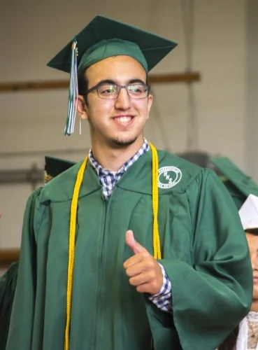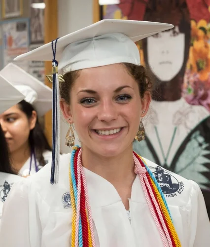 A soon-to-be Huntington High School grad is all smiles before Friday’s ceremony. (Photo/Darin Reed)
