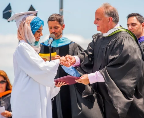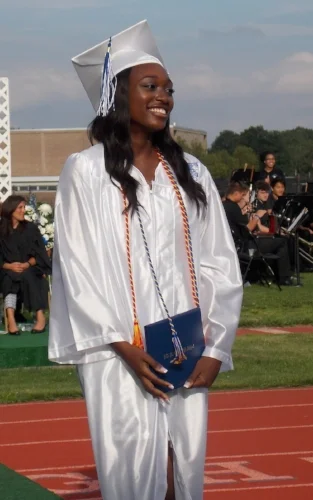 A Walt Whitman High School graduate receives her diploma on Saturday. (Long Islander News photo/Jano Tantongco)