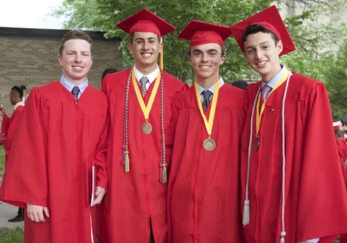 Half Hollow Hills High School West grads Daniel Kowalski, Nicholas Genovese, Matthew Barone and Jeremy Shuster are pictured after Friday’s ceremony. (Long Islander News photo/Janee Law)